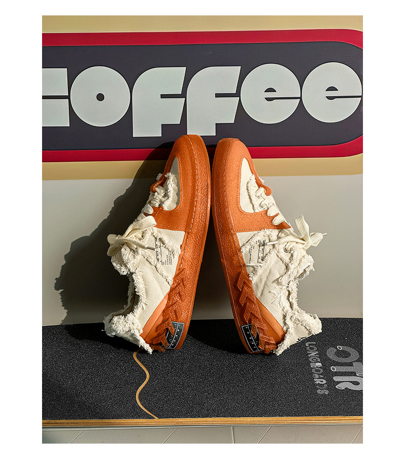 Men'S & Women'S All-Season Korean Style Low-Top Sneakers - White & Orange Minimalist Round-Toe Design, Breathable Fabric Upper, Cushioned Rubber Sole, Unisex Casual Shoes for Casual Attire, Gym, Office & Semi-Formal Events - Versatile All-Season Comfortable Sneakers, Men Sneaker, Men Shoe, Men Casual Shoe, Men Canva Shoe