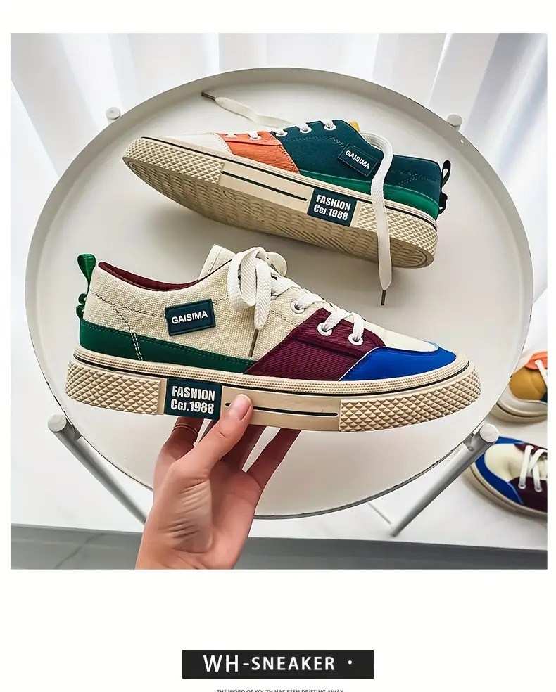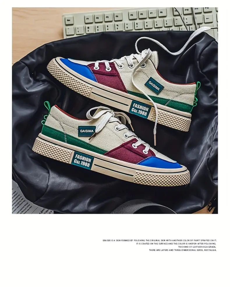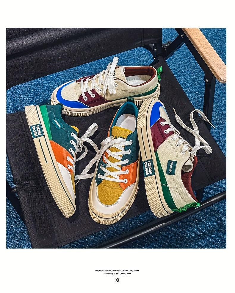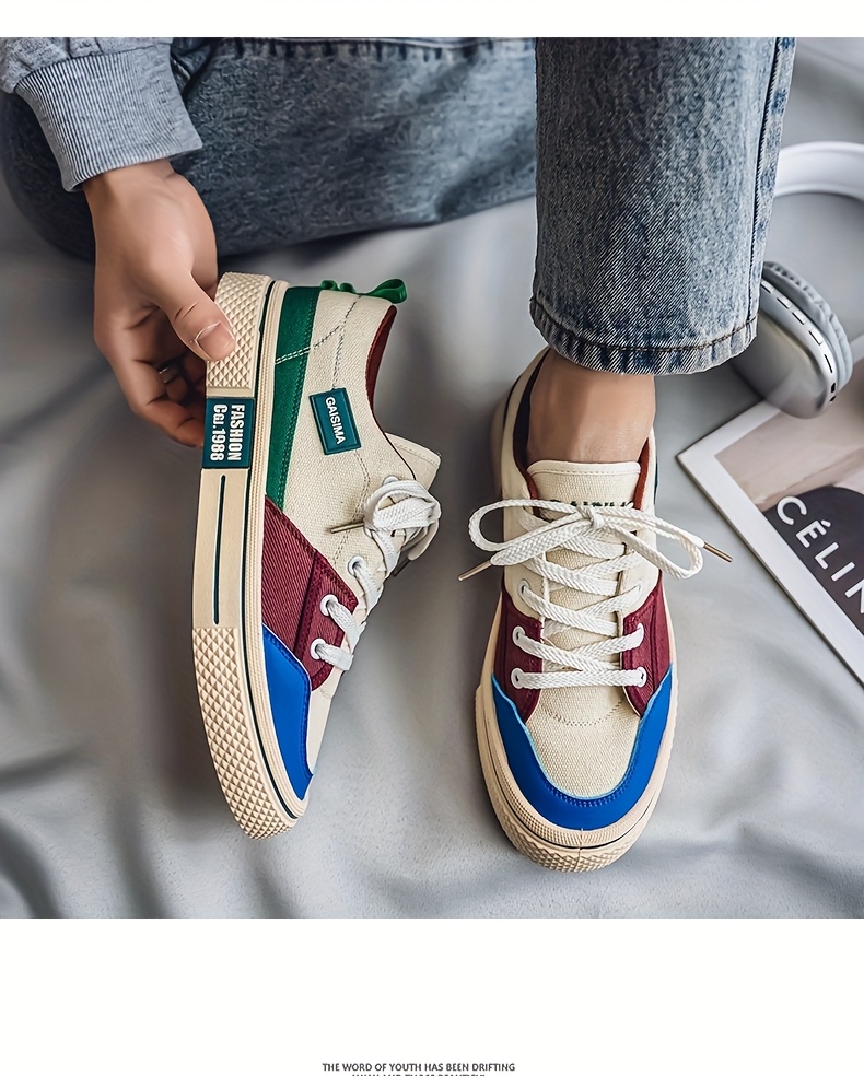 Summer New Men's Color-Block Canvas Shoes, Niche Breathable Trendy, Versatile Sports Casual Board Shoes