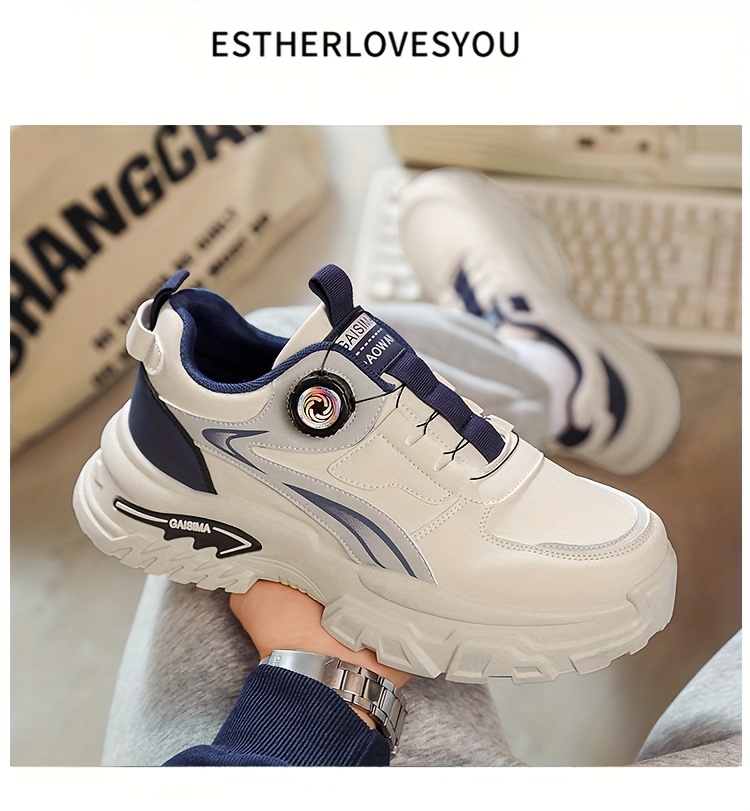 Men's Chunky Platform Sneakers - Breathable & Cushioned Sole, Lightweight Retro Dad Shoes Suitable for Gym, Hiking, Travel - Slip-Resistant Outsole, - Low-Top Training Sneakers