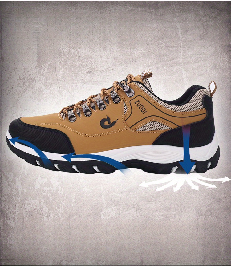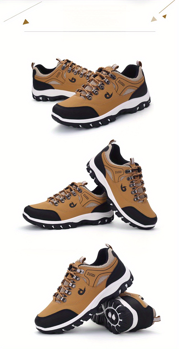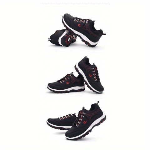 Men'S Low-Top Hiking Sneakers - Non-Slip, Durable EVA & Faux Upper, Breathable Mesh Lining, Lace-Up Casual Sports Shoes for All-Season Wear, Brown with Red Accents, Hiking Footwear | Stylish Hiking Shoes | Durable Footwear, Hiking Accessories