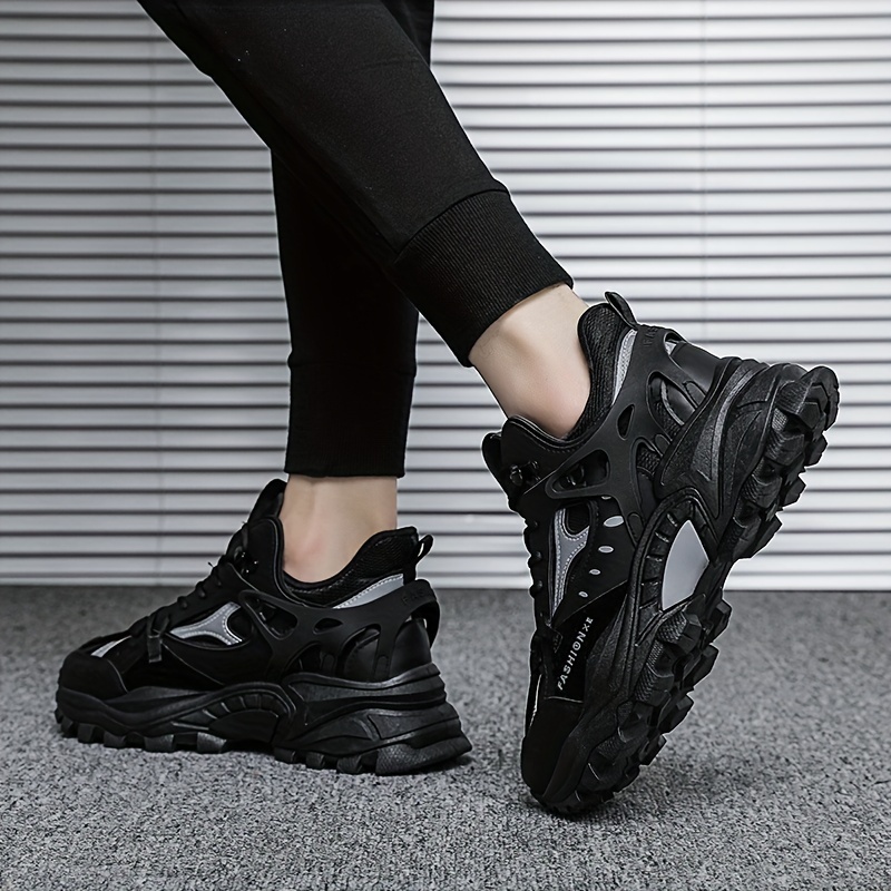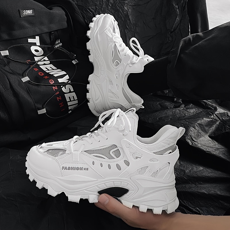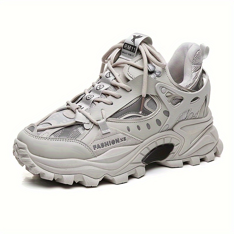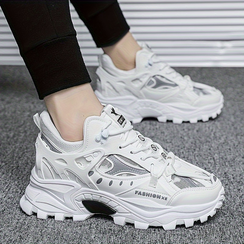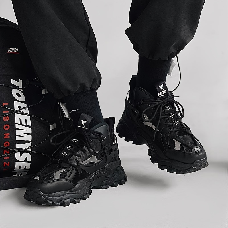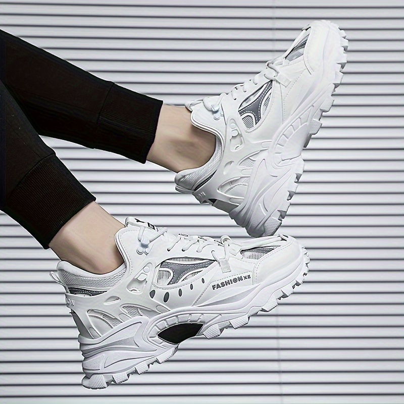Men's Trendy Solid Chunky Shoes, Comfy Non Slip Lace Up Casual Soft Sole Sneakers Men's Outdoor Activities
