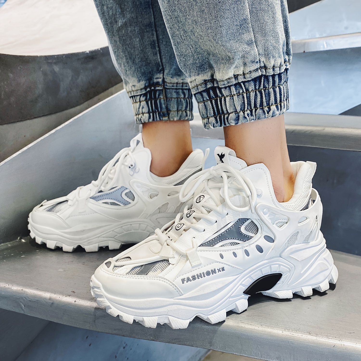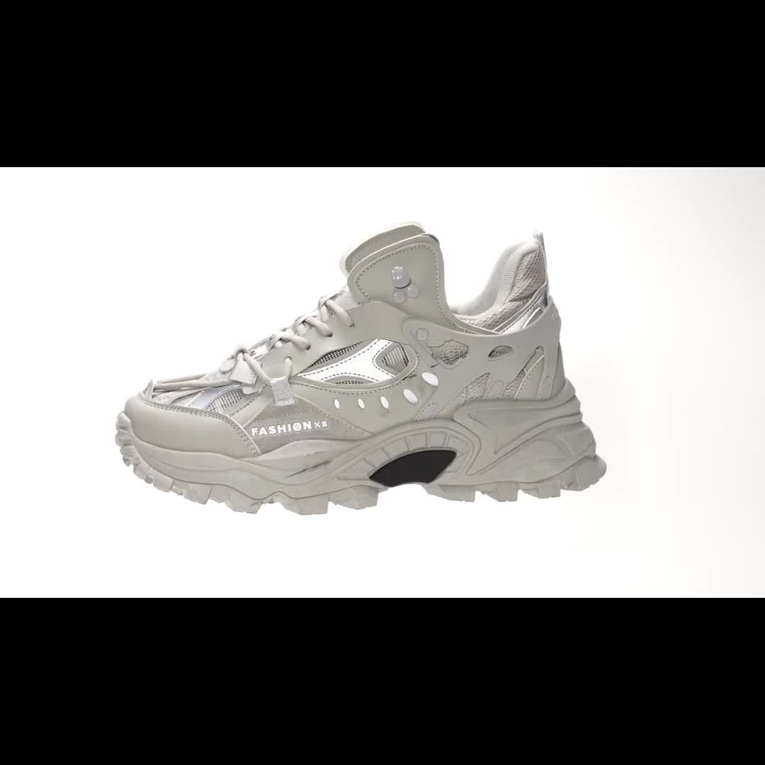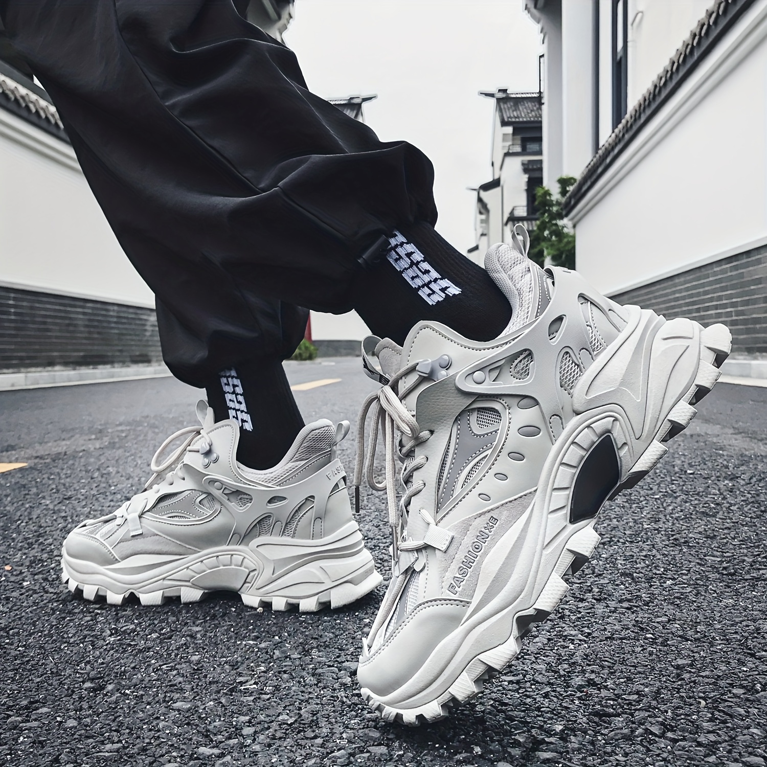 Men's Trendy Solid Chunky Shoes, Comfy Non Slip Lace Up Casual Soft Sole Sneakers Men's Outdoor Activities