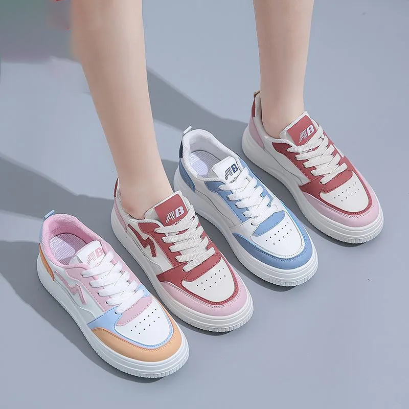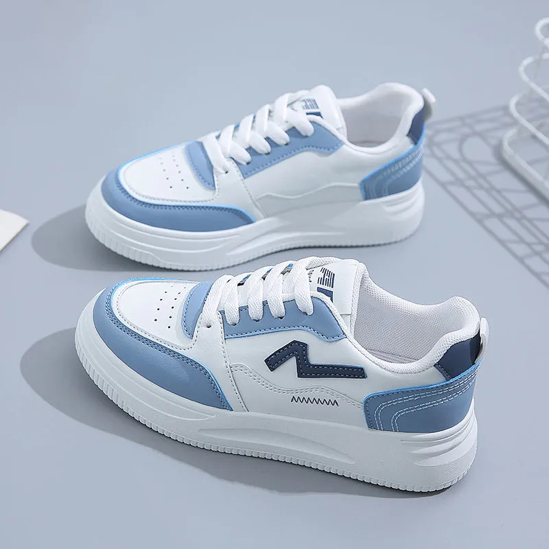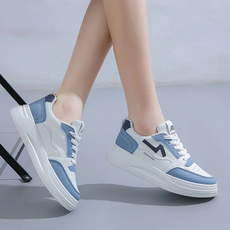 New Women'S Perforated Sports Shoes | Color-Block Thick Sole Casual Flats, Lace-up Closure, Low Top, All-season, EVA Material