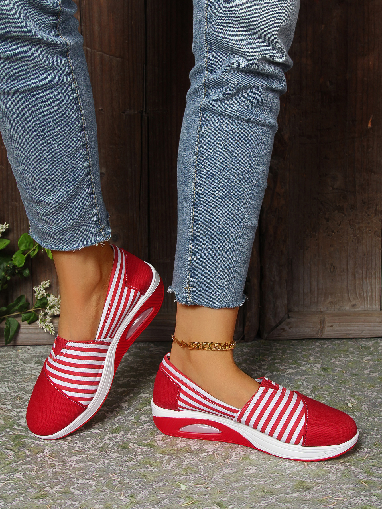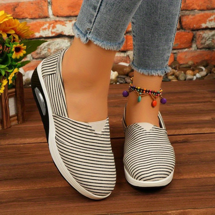 Summer Autumn New Striped Shoes Casual Round Toe Rocking Shoes Comfortable Mom Shoes Cross-border Large Size Women's Shoes, Women Shoes, Sneakers