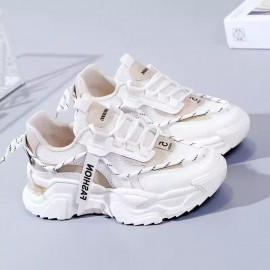 INS Korean Style Chunky Dad Shoes | Women'S Fashion Thick Sole Height Increasing Sneakers, Casual Tennis Shoes, Student Everyday Walking Shoes, Fabric Upper, Mesh Inner, Rubber Insole, Sole, Lace-up Closure
