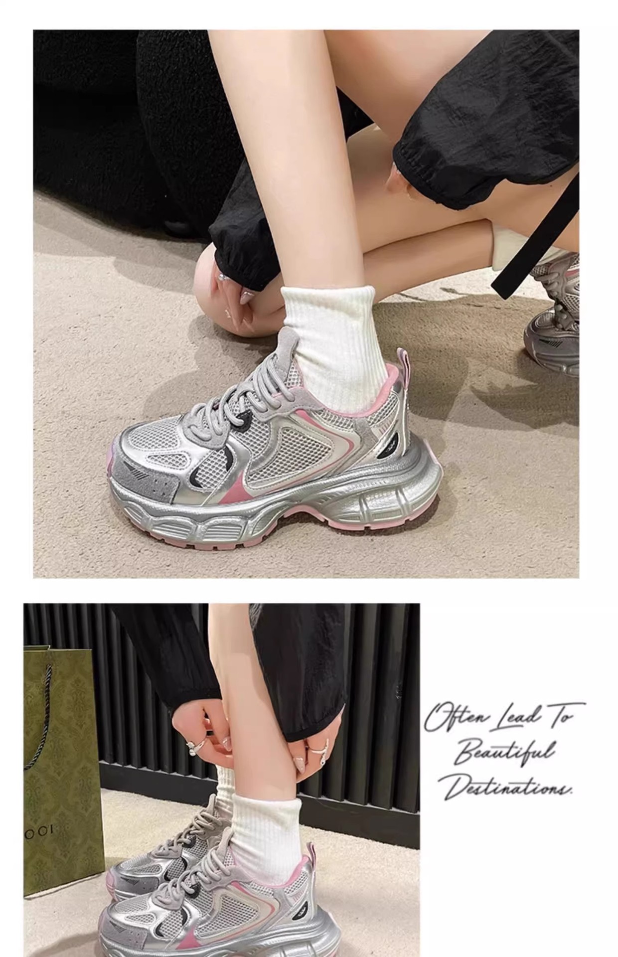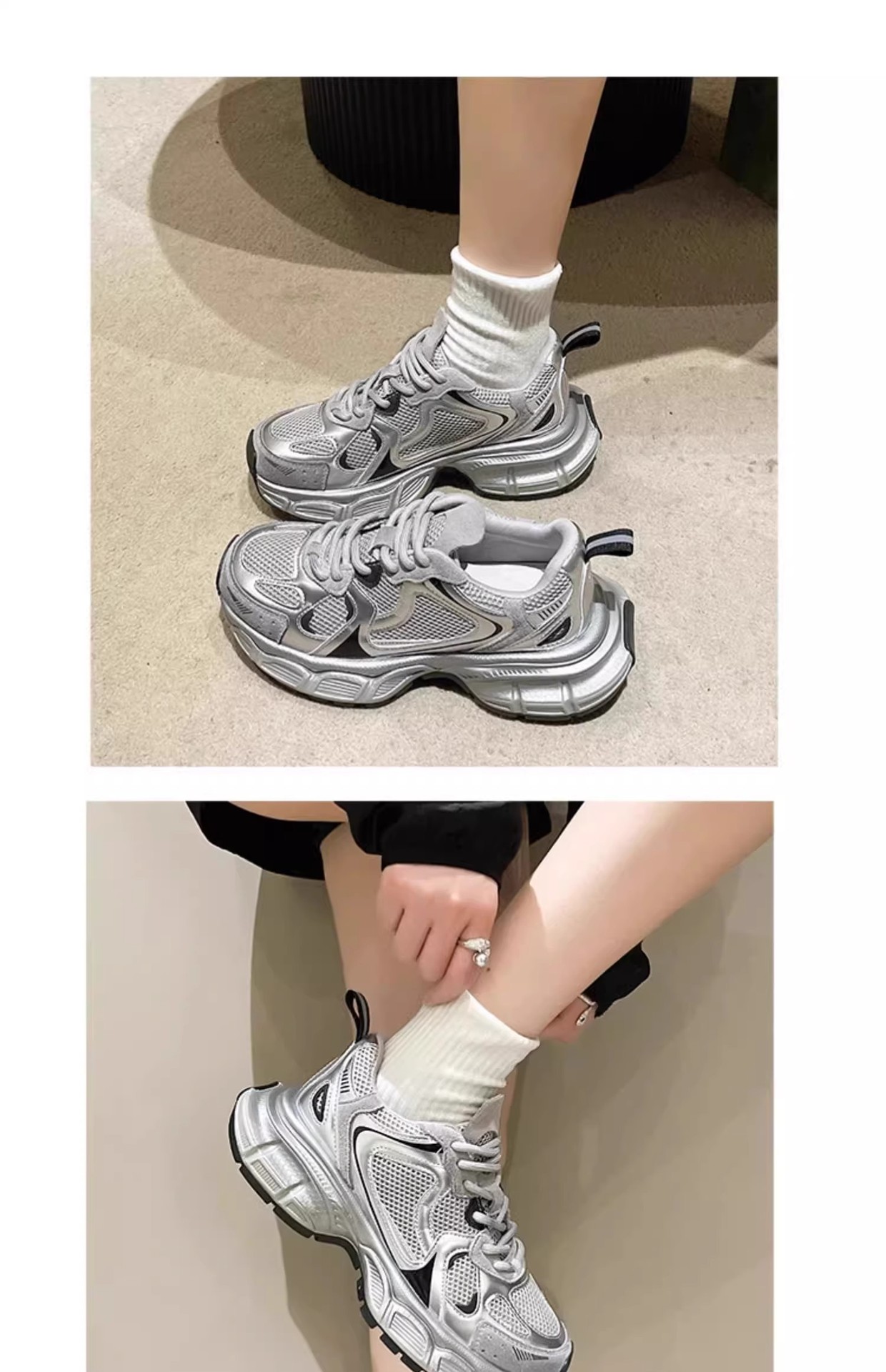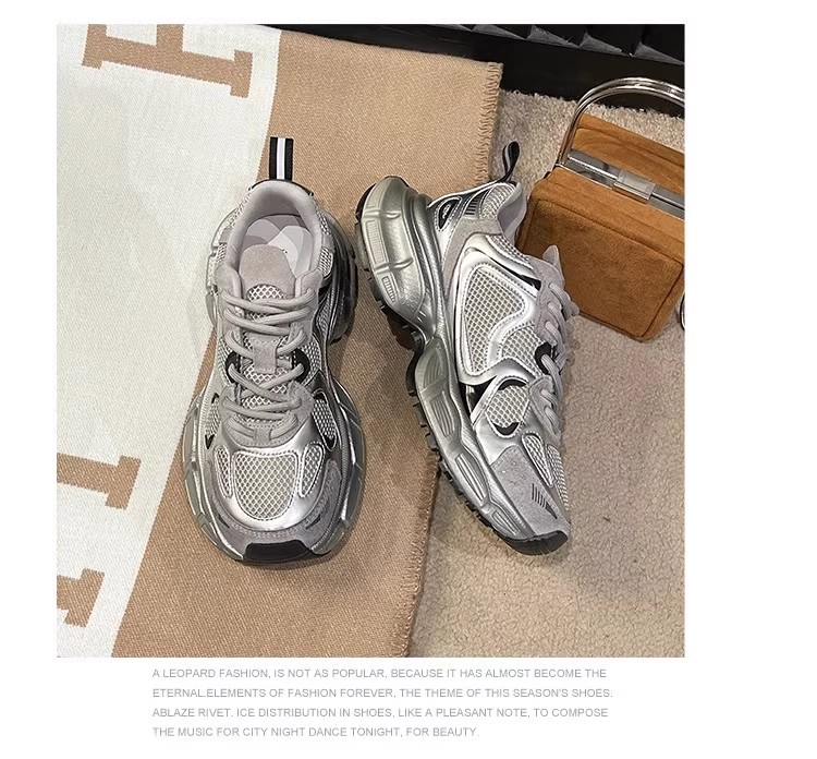 Women's Silvery Platform Sneakers Elegant Fashion Casual Shoes Height Increasing Athletic Tennis Shoes New