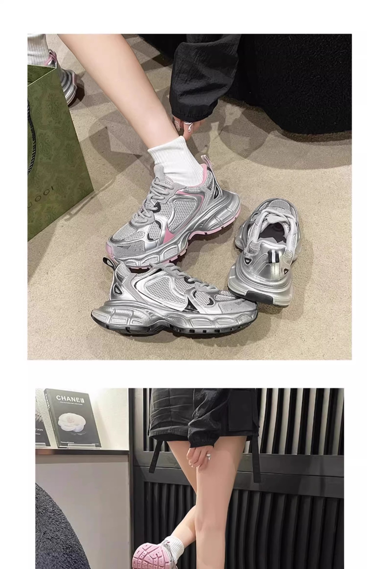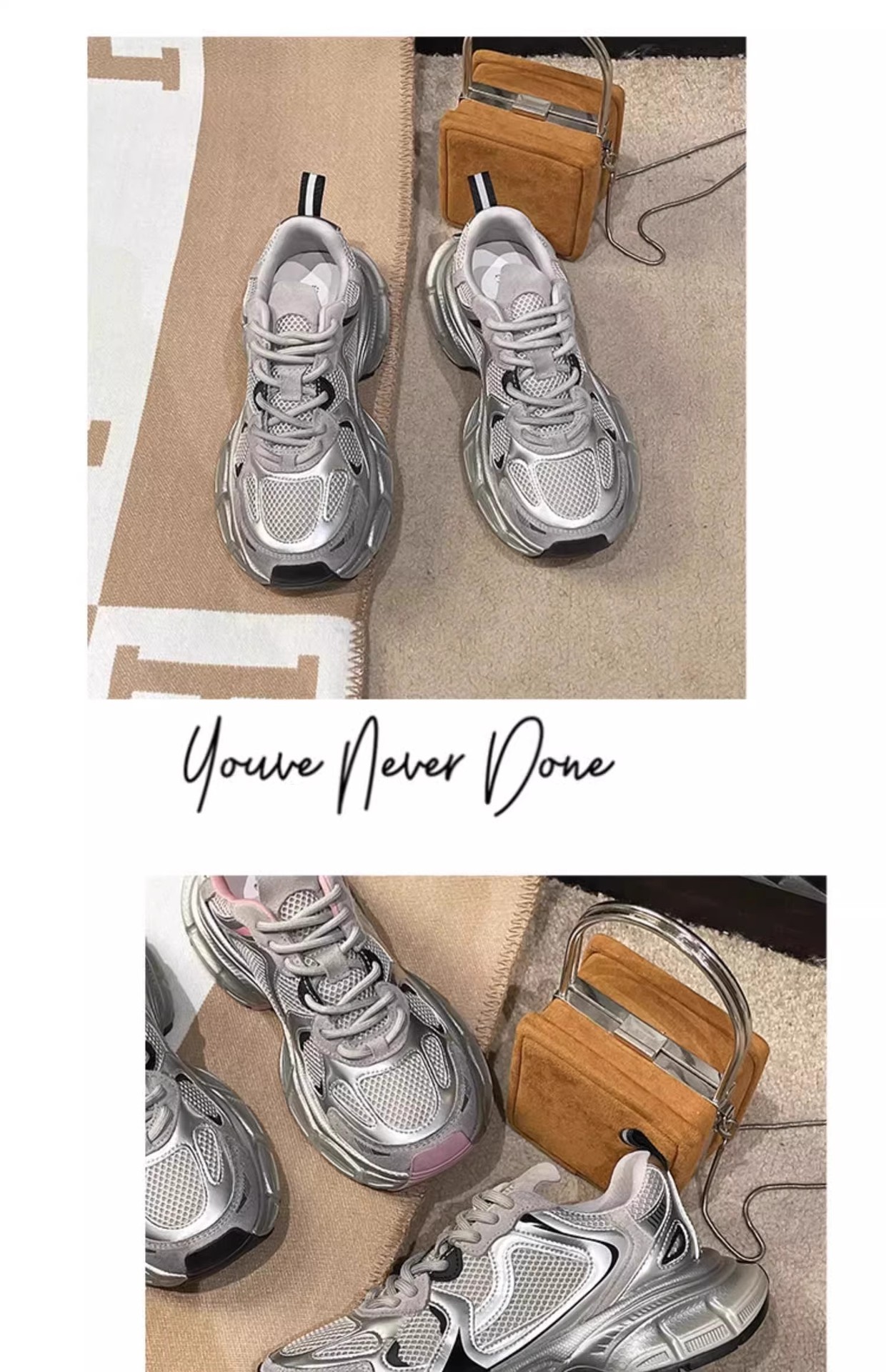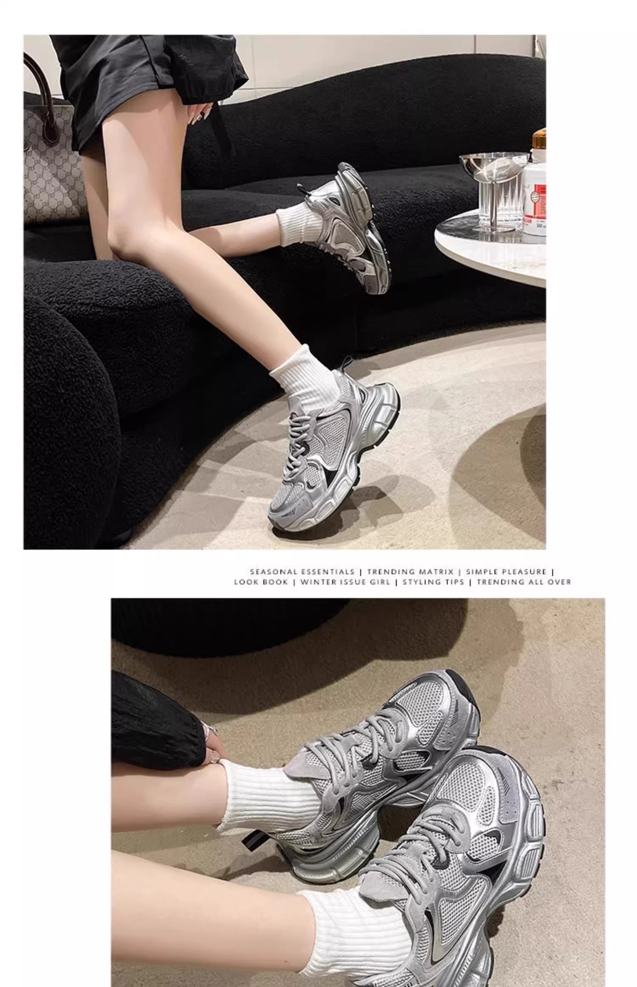 Women's Silvery Platform Sneakers Elegant Fashion Casual Shoes Height Increasing Athletic Tennis Shoes New
