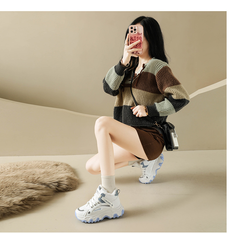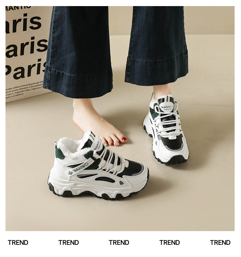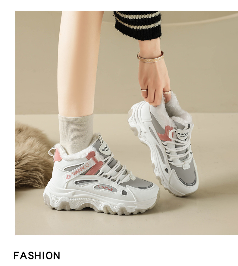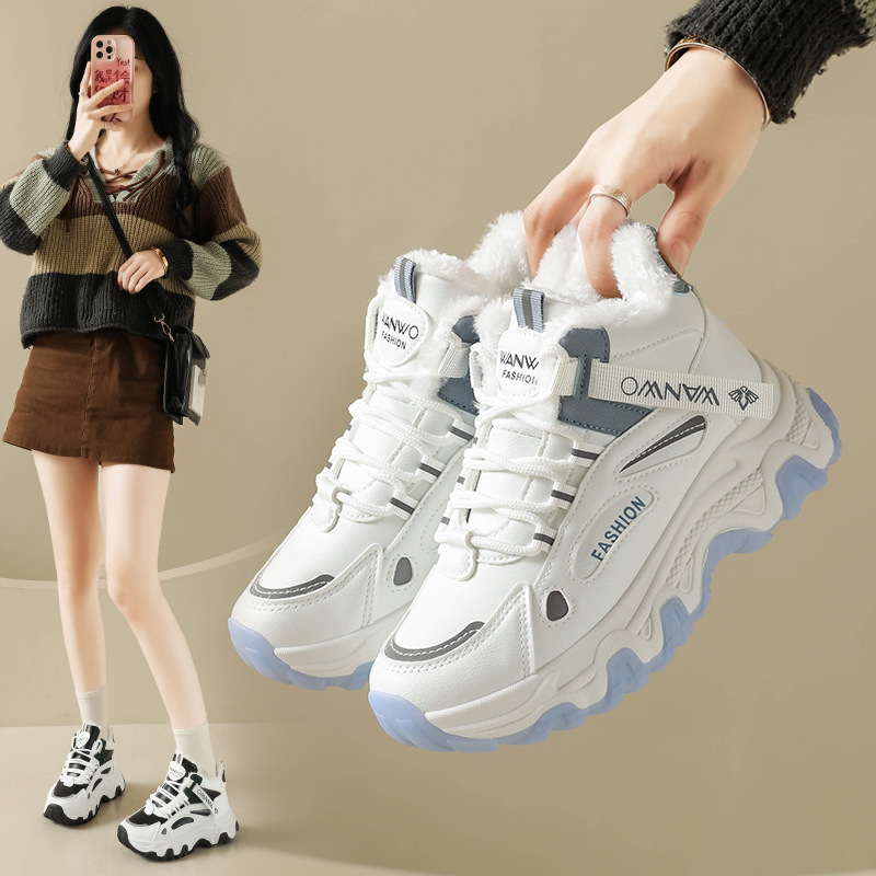 Chunky Dad Sneakers Women High Top Platform Fashion Shoes Warm Lined Casual Student Wear