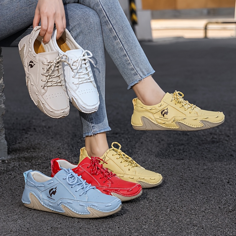 Men's & Women's Handmade Low-Top Sneakers - Large Size White, Yellow, Beige, Blue, Red | Retro Lace-Up Casual Shoes with Sole, - Wear Suitable for Sports & Everyday Use, Women Shoes