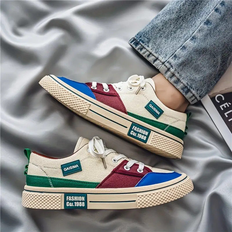 Summer New Men's Color-Block Canvas Shoes, Niche Breathable Trendy, Versatile Sports Casual Board Shoes