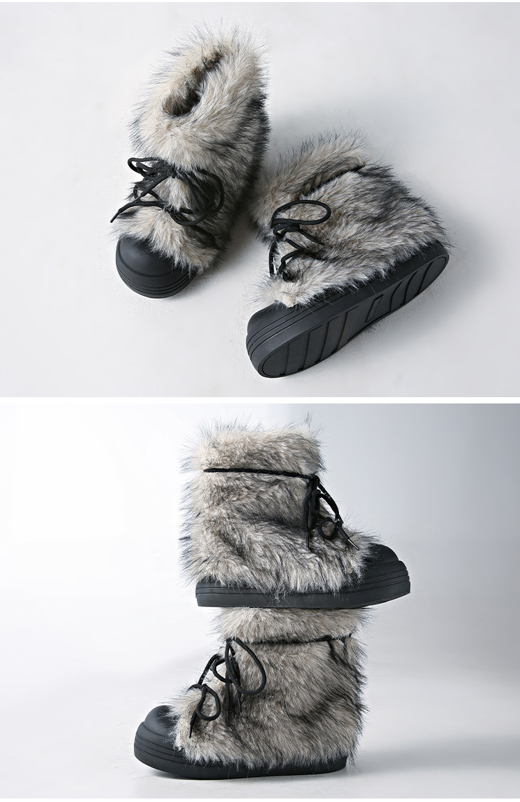 Women'S Vintage Furry Snow Boots with Plush faux fur Collar & Thick PVC Sole - Warm Winter Round Toe Boots, Durable Fabric Upper & Non-Slip Traction for Cold-Resistant Comfort, Casual & Semi-Formal Outfits (Brown) - Trendy Winter Footwear